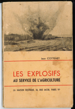 Petit livre surprenant — surtout par les temps qui courent — sur l’art d’utiliser des explosifs pour planter des arbres, dessoucher, arracher des troncs, ameublir le sous-sol ou encore creuser des puits ! De petites photographies en noir et blanc, parfois belles mais toujours étonnantes, ainsi qu’un bon nombre de dessins viennent illustrer cette pratique pour le moins déroutante. À noter : dans son avant-propos, l’auteur cite un ouvrage de référence pour le moins saisissant — La mise en valeur des terres par l’explosif, du colonel André Piédallu. Glaçant.
